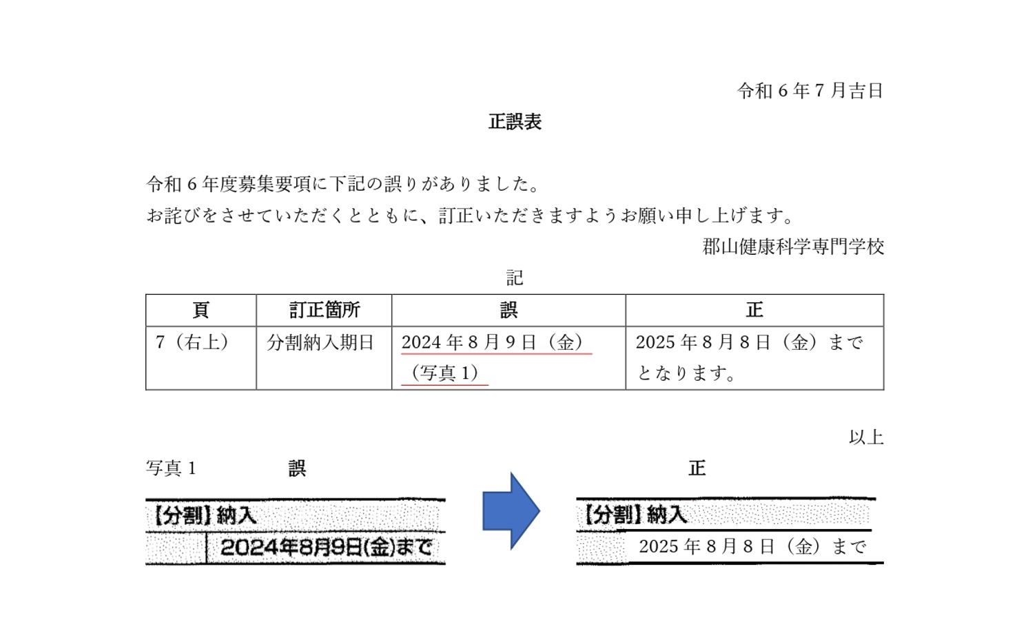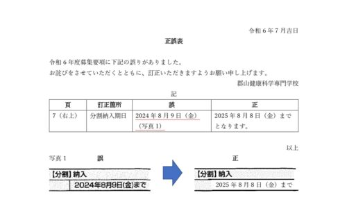 資料請求 お問い合わせ アクセス 日本語を学びたい方へ 在校生の方へ 卒業生の方へ 採用ご担当の方へ 入札情報について 保護者の方へ 学校案内Introduction 郡山健康科学専門学校について 学校概要 学校長挨拶 本校の特長 沿革 アクセス SDGsへの取り組み 学校案内 施設案内 国際交流センター 生涯学習センター 情報公開・学校報 学校基本情報 学校報 学科紹介Department 入学案内Admission オープンキャンパス等 オープンキャンパス 学校見学・進路相談 入試・選考 入学試験について 募集要項 学費・奨学金について 学費について 奨学金について その他支援制度等 社会人・高卒既卒者向け支援制度 職業実践専門課程 よくあるご質問 キャンパスライフCampus life キャンパスカレンダー 在校生の一日 寮生 自宅生 再進学者 サポート 学生寮 スクールバス 資格・就職License,Carrier 就職実績 国家試験合格率 東都VoiceVoice 学校長挨拶 先輩たちのVoice! 教員紹介 関連施設Related facilities 関連施設 キース鍼灸接骨院 キッズ東都学園保育園 わんぱく東都学園児童発達支援事業所・放課後等デイサービス事業所 にじいろ東都学園ユーススクール 介護職員初任者研修・介護職員実務者研修 つくば開成高等学校 郡山校 リンク集 こども未来学科 介護福祉学科 メディカルスポーツ柔道整復学科 作業療法学科 理学療法学科 日本語学科 国際日本語学科 学校案内 ▶ 学校概要 ▶ 学校長挨拶 ▶ 本校の特長 ▶ 沿革 ▶ アクセス ▶ SDGsへの取り組み ▶ 施設案内 ▶ 国際交流センター ▶ 生涯学習センター ▶ 学校基本情報 ▶ 学校報 入学案内 ▶ オープンキャンパス ▶ 学校見学・進路相談 ▶ 入学試験について ▶ 募集要項 ▶ 学費について ▶ 奨学金について ▶ 保護者の方へ ▶ 社会人・高校既卒者向け支援制度 ▶ 職業実践専門課程 ▶ よくあるご質問 キャンパスライフ ▶ キャンパスカレンダー ▶ 在校生の1日 ▶ 学生サポート ▶ 学生寮 ▶ スクールバス 資格・就職 ▶ 就職実績 ▶ 国家試験合格率 東都Voice ▶ 先輩たちのVoice! ▶ 教員紹介 関連施設 ▶ キース鍼灸接骨院 ▶ キッズ東都学園保育園 ▶ わんぱく東都学園児童発達支援事業所・放課後等デイサービス事業所 ▶ にじいろ東都学園ユーススクール ▶ 介護職員初任者研修/実務者研修 ▶ つくば開成高等学校 郡山校 お知らせ ▶ 新着情報 ▶ トピックス 学校基本情報 │ プライバシーポリシー ソーシャルメディアポリシー │ リンク集 サイトマップ │ 教職員採用情報 文部科学省委託事業 本学全体の最新情報をお届けしますお知らせ 2024.06.28 スクリーンショット 2024-06-28 110319 < 前へ 一覧に戻る 新着記事 2025.07.14 求人情報を更新しました。 2025.12.10 福島ファイヤーボンズ様と包括協定締結式を行いました 2025.12.06 第9回まんまーる東都学園こども食堂 2025.12.05 年末年始 休校のお知らせ 2025.11.18 12月-進学イベントのご案内 2025.11.01 第8回まんまーる東都学園こども食堂