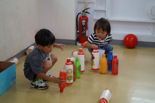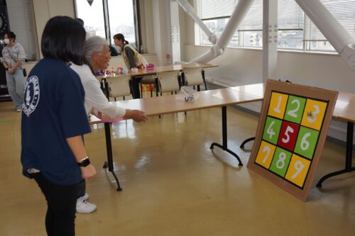 食事の前後は、わんぱく東都学園児童発達支援事業所・放課後等デイサービス事業所やキッズ東都学園保育園、こども未来学科のスタッフによる手作りのストラックアウト、ボーリングなどで楽しい時間を過ごしました。