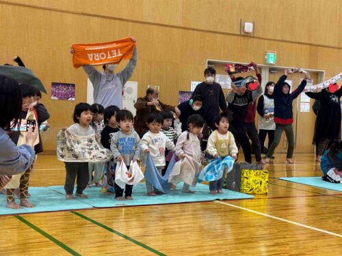 まずはチアのパフォーマンスを披露していただき、その後は一緒にタオルダンスとしっぽ取りゲームで体を動かし、心地よい汗を流しました。