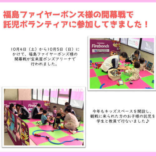こども未来学科 福島ファイヤーボンズ様 託児ボランティア♪
