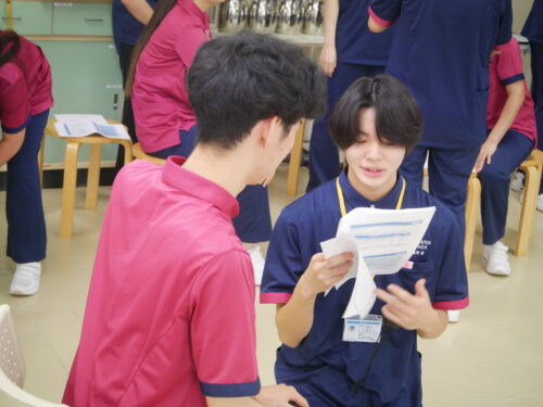 介護予防講座では、握力や立ち上がり、歩行スピードのテストを測定者と実施者の両方を体験することで、将来の介護現場でも活用できる視点を身につけることができました。
