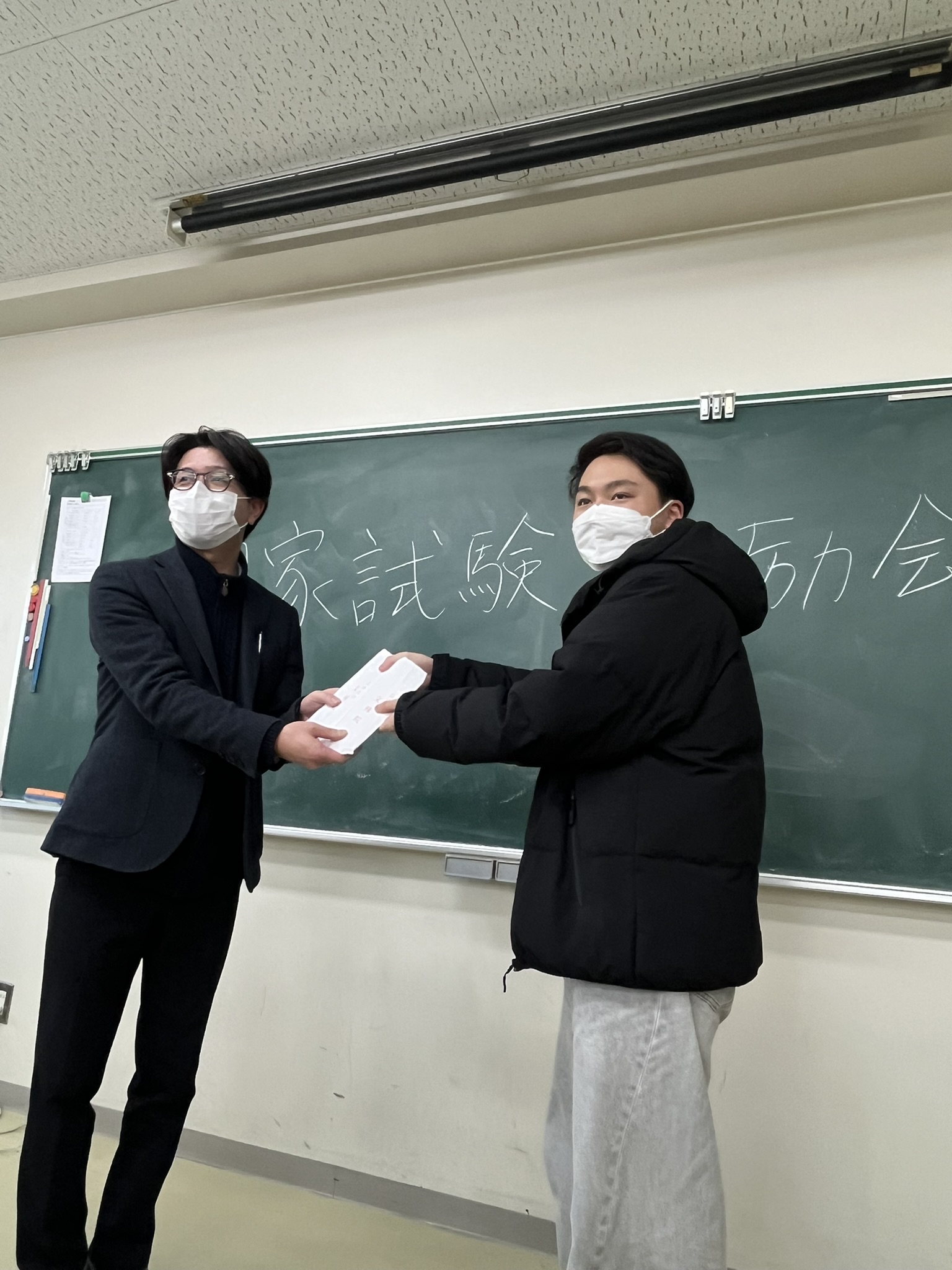 学校長や1年生全員からの応援メッセージを送ったあと、介護福祉学科を代表して学科長より合格祈願鉛筆をプレゼントしました!