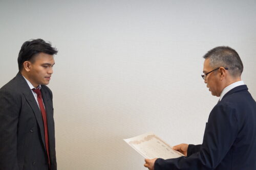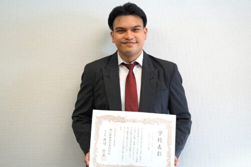 教室でも学科長から改めて表彰状を授与してもらい最後に記念撮影をしました。