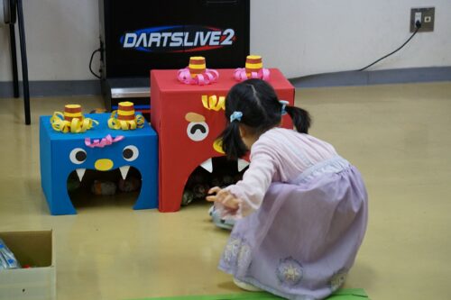 お子さんが楽しみにしている、手作りのお遊びコーナー。