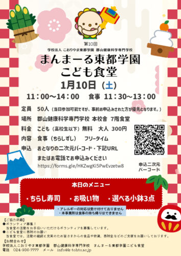 資料請求 お問い合わせ アクセス 日本語を学びたい方へ 在校生の方へ 卒業生の方へ 採用ご担当の方へ 入札情報について 保護者の方へ 学校案内Introduction 郡山健康科学専門学校について 学校概要 学校長挨拶 本校の特長 沿革 アクセス SDGsへの取り組み 学校案内 施設案内 国際交流センター 生涯学習センター 情報公開・学校報 学校基本情報 学校報 学科紹介Department 入学案内Admission オープンキャンパス等 オープンキャンパス 学校見学・進路相談 入試・選考 入学試験について 募集要項 学費・奨学金について 学費について 奨学金について その他支援制度等 社会人・高卒既卒者向け支援制度 職業実践専門課程 よくあるご質問 キャンパスライフCampus life キャンパスカレンダー 在校生の一日 寮生 自宅生 再進学者 サポート 学生寮 スクールバス 資格・就職License,Carrier 就職実績 国家試験合格率 東都VoiceVoice 学校長挨拶 先輩たちのVoice! 教員紹介 関連施設Related facilities 関連施設 キース鍼灸接骨院 キッズ東都学園保育園 わんぱく東都学園児童発達支援事業所・放課後等デイサービス事業所 にじいろ東都学園フリースクール 介護職員初任者研修・介護職員実務者研修 つくば開成高等学校 郡山校 リンク集 こども未来学科 介護福祉学科 メディカルスポーツ柔道整復学科 作業療法学科 理学療法学科 日本語学科 国際日本語学科 学校案内 ▶ 学校概要 ▶ 学校長挨拶 ▶ 本校の特長 ▶ 沿革 ▶ アクセス ▶ SDGsへの取り組み ▶ 施設案内 ▶ 国際交流センター ▶ 生涯学習センター ▶ 学校基本情報 ▶ 学校報 入学案内 ▶ オープンキャンパス ▶ 学校見学・進路相談 ▶ 入学試験について ▶ 募集要項 ▶ 学費について ▶ 奨学金について ▶ 保護者の方へ ▶ 社会人・高校既卒者向け支援制度 ▶ 職業実践専門課程 ▶ よくあるご質問 キャンパスライフ ▶ キャンパスカレンダー ▶ 在校生の1日 ▶ 学生サポート ▶ 学生寮 ▶ スクールバス 資格・就職 ▶ 就職実績 ▶ 国家試験合格率 東都Voice ▶ 先輩たちのVoice! ▶ 教員紹介 関連施設 ▶ キース鍼灸接骨院 ▶ キッズ東都学園保育園 ▶ わんぱく東都学園児童発達支援事業所・放課後等デイサービス事業所 ▶ にじいろ東都学園フリースクール ▶ 介護職員初任者研修/実務者研修 ▶ つくば開成高等学校 郡山校 お知らせ ▶ 新着情報 ▶ トピックス 学校基本情報 │ プライバシーポリシー ソーシャルメディアポリシー │ リンク集 サイトマップ │ 教職員採用情報 文部科学省委託事業 本学全体の最新情報をお届けしますお知らせ 2025.12.08 スライド1 < 前へ 一覧に戻る 新着記事 2026.01.28 【重要】特別選抜入学試験(最終入試)の実施について 2025.07.14 求人情報を更新しました。 2026.03.07 第12回 まんまーる東都学園こども食堂 2026.02.23 令和8年2月25日(水)実施 フードパントリーのお知らせ(まんまーる東都学園こども食堂) 2026.02.10 フードパントリーのお知らせ(まんまーる東都学園こども食堂) 2026.02.08 【令和8年4月入学、まだ間に合います!】3月-進学イベントのご案内 2026.02.07 第11回 まんまーる東都学園こども食堂
