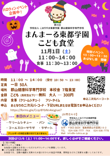 資料請求 お問い合わせ アクセス 日本語を学びたい方へ 在校生の方へ 卒業生の方へ 採用ご担当の方へ 入札情報について 保護者の方へ 学校案内Introduction 郡山健康科学専門学校について 学校概要 学校長挨拶 本校の特長 沿革 アクセス SDGsへの取り組み 学校案内 施設案内 国際交流センター 生涯学習センター 情報公開・学校報 学校基本情報 学校報 学科紹介Department 入学案内Admission オープンキャンパス等 オープンキャンパス 学校見学・進路相談 入試・選考 入学試験について 募集要項 学費・奨学金について 学費について 奨学金について その他支援制度等 社会人・高卒既卒者向け支援制度 職業実践専門課程 よくあるご質問 キャンパスライフCampus life キャンパスカレンダー 在校生の一日 寮生 自宅生 再進学者 サポート 学生寮 スクールバス 資格・就職License,Carrier 就職実績 国家試験合格率 東都VoiceVoice 学校長挨拶 先輩たちのVoice! 教員紹介 関連施設Related facilities 関連施設 キース鍼灸接骨院 キッズ東都学園保育園 わんぱく東都学園児童発達支援事業所・放課後等デイサービス事業所 にじいろ東都学園フリースクール 介護職員初任者研修・介護職員実務者研修 つくば開成高等学校 郡山校 リンク集 こども未来学科 介護福祉学科 メディカルスポーツ柔道整復学科 作業療法学科 理学療法学科 日本語学科 国際日本語学科 学校案内 ▶ 学校概要 ▶ 学校長挨拶 ▶ 本校の特長 ▶ 沿革 ▶ アクセス ▶ SDGsへの取り組み ▶ 施設案内 ▶ 国際交流センター ▶ 生涯学習センター ▶ 学校基本情報 ▶ 学校報 入学案内 ▶ オープンキャンパス ▶ 学校見学・進路相談 ▶ 入学試験について ▶ 募集要項 ▶ 学費について ▶ 奨学金について ▶ 保護者の方へ ▶ 社会人・高校既卒者向け支援制度 ▶ 職業実践専門課程 ▶ よくあるご質問 キャンパスライフ ▶ キャンパスカレンダー ▶ 在校生の1日 ▶ 学生サポート ▶ 学生寮 ▶ スクールバス 資格・就職 ▶ 就職実績 ▶ 国家試験合格率 東都Voice ▶ 先輩たちのVoice! ▶ 教員紹介 関連施設 ▶ キース鍼灸接骨院 ▶ キッズ東都学園保育園 ▶ わんぱく東都学園児童発達支援事業所・放課後等デイサービス事業所 ▶ にじいろ東都学園フリースクール ▶ 介護職員初任者研修/実務者研修 ▶ つくば開成高等学校 郡山校 お知らせ ▶ 新着情報 ▶ トピックス 学校基本情報 │ プライバシーポリシー ソーシャルメディアポリシー │ リンク集 サイトマップ │ 教職員採用情報 文部科学省委託事業 本学全体の最新情報をお届けしますお知らせ 2025.10.17 スライド1 < 前へ 一覧に戻る 新着記事 2026.01.28 【重要】特別選抜入学試験(最終入試)の実施について 2025.07.14 求人情報を更新しました。 2026.03.07 第12回 まんまーる東都学園こども食堂 2026.02.23 令和8年2月25日(水)実施 フードパントリーのお知らせ(まんまーる東都学園こども食堂) 2026.02.10 フードパントリーのお知らせ(まんまーる東都学園こども食堂) 2026.02.08 【令和8年4月入学、まだ間に合います!】3月-進学イベントのご案内 2026.02.07 第11回 まんまーる東都学園こども食堂