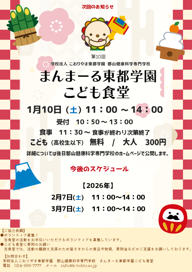 次回 第9回まんまーる東都学園こども食堂について、以下の通りお知らせいたします。